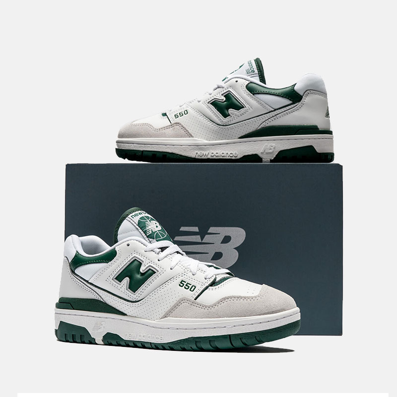 New Balance با مدل ۵۵۰ ترکیبی از طراحی دهه ۱۹۸۰ و ویژگی های پشتیبانی کننده با تناسبات نمادین، ظاهری مدرن ارائه می دهد. رویه چرم کلاسیک توسط یک یقه پف کرده و دوخته شده برای تفسیری ظریف از فوم قالبگیری شده پشتیبانی میشود، در حالی که طراحی رویه چرم با لبههای خام سبک برجسته کفش را برای هر جزئیات اعمال میکند.